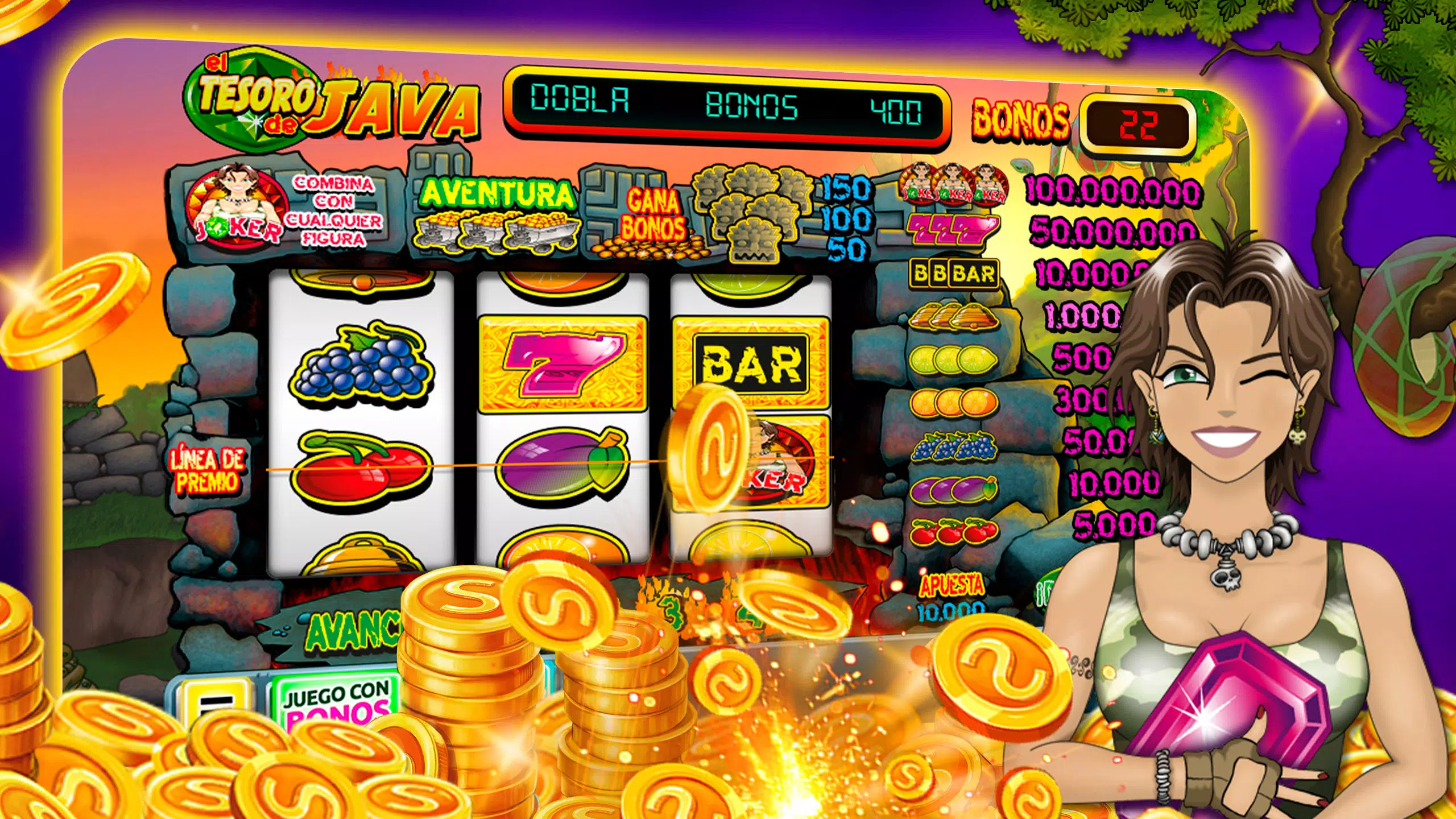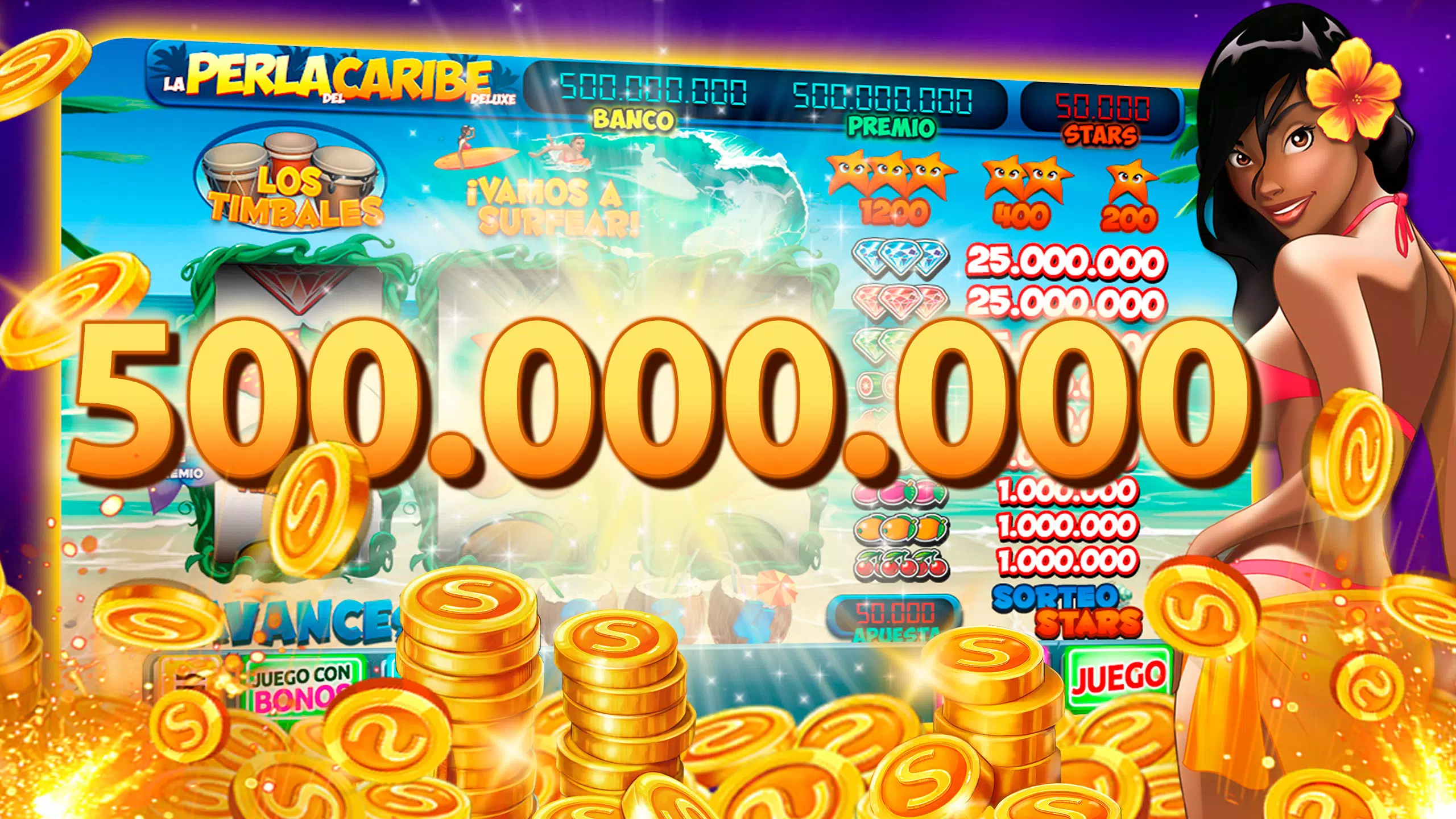 Mainkan slot kasino gratis terbaik. Rasakan serunya slot Las Vegas dengan mendapatkan jackpot dengan memenangkan hadiah slot besar dan bersaing dengan teman-teman Anda. Slot dan mesin slot terbaik menanti Anda dengan bonus, mini-game kasino, dan putaran gratis. Selain itu, Anda juga akan menemukan bar dan mesin slot legendaris, seperti La Perla del Caribe Deluxe, dengan permainan ganda, kemajuan, penangguhan, bonus, dan mini-game. Tunggu apa lagi untuk memutar gulungan mesin slot?